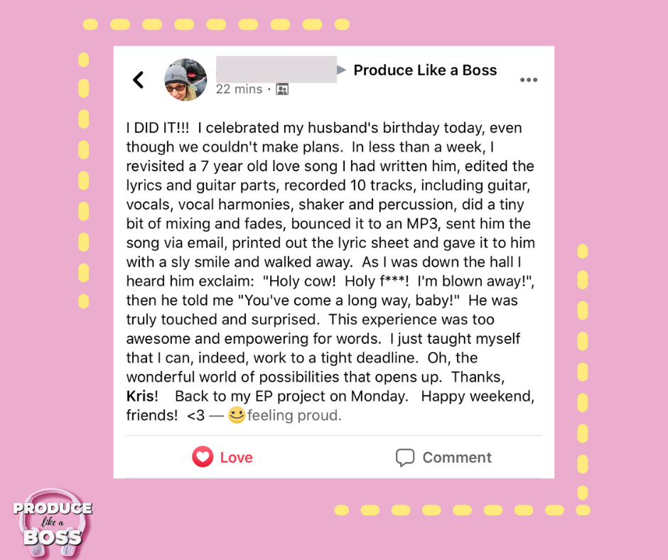 Now looking back, learning how to produce was life changing for me and my career! It put the power in my hands. Gave me control over my music AND masters. It opened the doors to the exciting world of sync. In the beginning my producing skills saved me THOUSANDS of dollars on demos and studio time as a singer-songwriter. But then I started making money by recording demos for other artists and producing vocal session work.